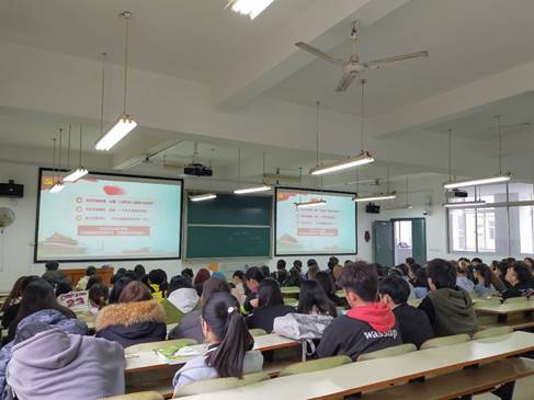 党委书记陈岳堂主讲。全体校领导、中层干部、党支部书记、马克思主义学院全体教师于一报告厅主会场参加活动,其余师生于分会场观看同步直播。
