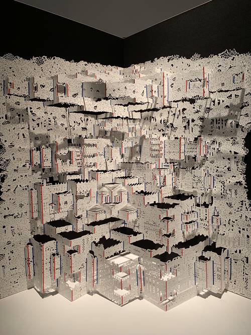 本次展览受邀艺术家包括蔡国强、邱志杰、陈琦、施慧等国内外知名艺术家,作为本次展览最年轻的受邀艺术家,唐征维老师的参展作品是他最新创作的系列作品《碳折叠 NO.3》和《子夜系列》。《碳折叠 NO.3》是碳折叠系列作品的第三件,主要通过纸艺术的形式阐述对西方碳金融背后的权力架构的思考,作品尝试将排放的主要基础——工业体组合成一个“排放帝国”,在手法上融合剪纸与立体折纸,最后形成书籍的样式,这个“排放帝国”在书的开合中形成存在与超越。《子夜系列》作品均是在特定的时间——子夜完成的构思,设计构思在意识显像的那一刻形成并被记录下来,然后通过剪纸的形式再创作出来。近年来,唐征维老师凭借独特的作品语言和深邃的思想深度在纸艺术领域崭露头角,多次参加国内重要展览,作品被中国美术学院、金杜艺术中心等机构收藏。