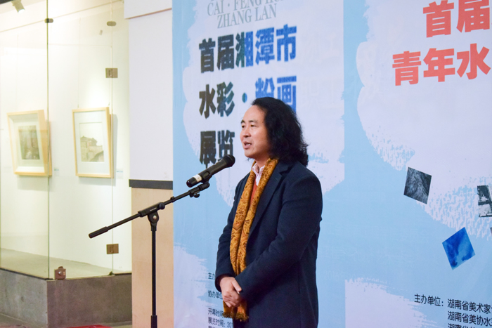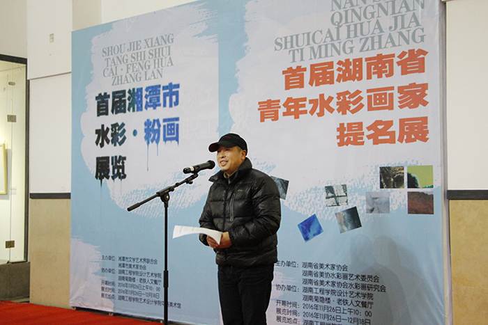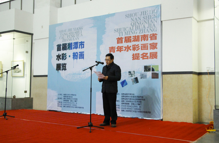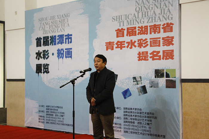 党委委员、副校长罗毅平教授致欢迎辞,湘潭市美协主席王志坚、湖南省美协水彩画艺术委员会主任、中南大学博士生导师蒋烨、中国美协水彩画艺术委员会委员刘永健先生及湖南省美协副主席、湖南大学博士生导师陈飞虎教授为此次开幕式致辞。随后,为青年水彩提名画家及获奖者颁发证书,提名画家代表刘慧发表感言。