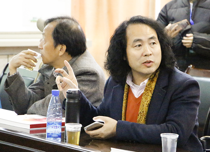 蒋烨主任宣布会议开始,在向到会的人员表示欢迎之后会议进入正题。蒋主任首先就此画展给予了极大的肯定,感谢段辉院长对青年水彩画家提名展的场地支持及老铁人文餐厅的经济赞助,并对青年画家的作品大为赞赏。湖南美协副主席陈飞虎在会议中提及了活动后期策划与安排。湖南师范大学刘勇健教授向大家分享了自己的见解他认为应该给予年轻人更多机会,放下出身成见,哪怕是在校大学生也有创造的能力,鼓励大家去发掘身边的创作人才,共同为扩广水彩艺术的发展而努力。