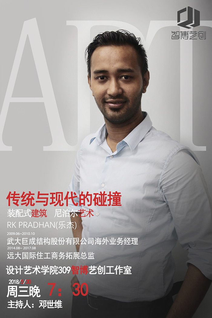 2018年5月29日晚上7:30,樱花动漫 309智博艺创工作室将召开一场别开生面的文化沙龙。 本次文化沙龙邀请了曾任武大巨成结构股份有限公司海外业务经理和远大国际住工商务拓展总监 的RK PRADHAN (乐杰),他将给我们讲解装配式建筑和尼泊尔艺术,感受一场充满异域风情的文化艺术盛宴。