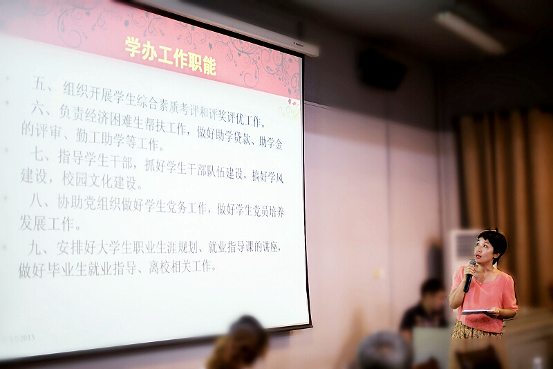 党总支书记凌毅、学院副院长蒋德军、学办所有老师和在校的所有新生班主任。有50多位新生家长参加了座谈会。