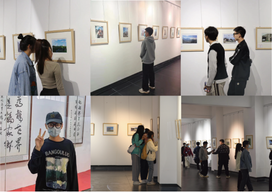 本次展览共计展出百余件风格多样的优秀摄影书画作品。创作者围绕劳动美、时代美,以独特的审美角度和细腻的手法捕捉生活里美的瞬间,引得全校师生纷纷前来欣赏这些亮点纷呈的摄影书画作品,并在喜爱的作品前打卡留念。在观展过程中,有驻足停留、久久不舍离去的,有认真聆听志愿者讲解作品的,有拿起相机记录优秀作品的……同学们纷纷发圈点赞并表示,“观看展览既是一次体验式的美育活动,更是一次艺术之旅”。
