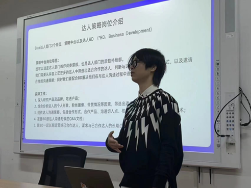 在市场运营和广告推广下沉发展的趋势下,为帮助更多的广告学学生通过运营自媒体实现自主创业,广告学专业和捕鹿数研在2022年共同成立了电商实战工作室和直播工作室。此次捕鹿的工作人员结合实战案例对工作室的管理进行了指导,着重帮助广告学专业的师生解决直播实践中短视频引流和直播运营两个薄弱环节存在的问题。