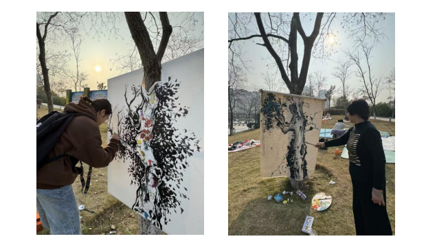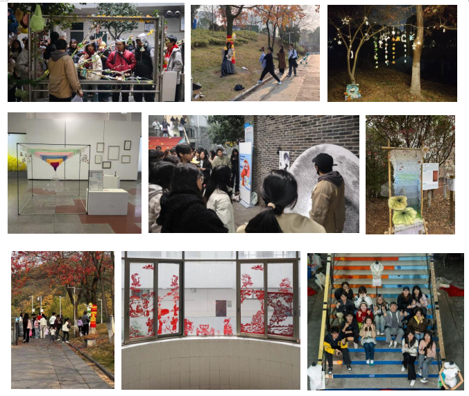 以 “共振剧场” 为主题,打造了一场沉浸式公共空间艺术周。本次活动是阳立球老师指导环境设计2302、2303、2304班《环境公共艺术》课程的核心实践成果,落地于木鱼湖园区与设计艺术楼两大场地,旨在通过艺术创作打破边界,让原本单调的公共空间,蜕变为人与人、人与环境对话的 “共振场”。