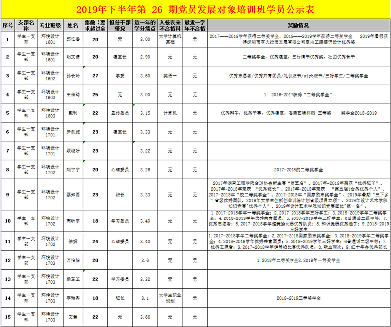 在听取党小组和党员、群众意见的基础上,经支部委员会审查,拟将邱忆香等45位同学(同志)定位第26期发展对象并进行公示。名单如下: