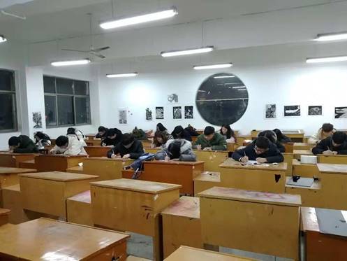 学生第三党支部书记张澎进行监考,察看考场情况。
