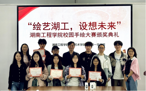 校园文化作品征集活动由学院党委牵头,联合教工第一支部、学生工作处、专业教研室等多部门组建专项工作组,历时三个月的筹备周期,立足新时代校园文化建设需求,以"讲好校园故事"为核心目标,旨在通过艺术创作挖掘校园精神内核,强化师生对"湖工精神"的价值认同。本次校园手绘大赛自启动以来,得到了全校师生的积极响应和广泛参与。共收到来自各个专业的近百幅参赛作品。这些作品题材丰富、形式多样,有的描绘了湖工校园里古朴典雅的教学楼、郁郁葱葱的林荫道,有的展现了同学们在实验室里专注研究的身影、在运动场上挥洒汗水的瞬间,还有的用奇幻的色彩勾勒出对学校未来发展的美好设想。经过专业评委们的认真评选,最终评选出一等奖2名、二等奖5名、三等奖8名。