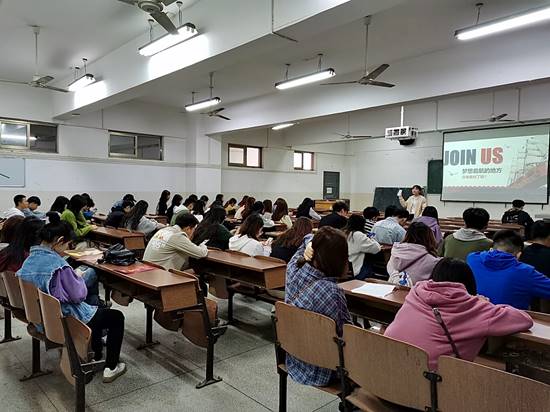 602室召开以“梦想启航的地方”为主题的鸿扬家装校园人才招聘会。大会由鸿扬集团校园招聘会宣讲员彭敏俐主讲,樱花动漫
