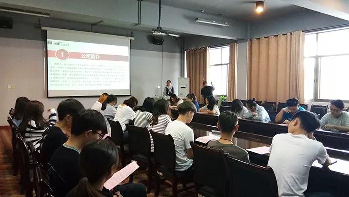 湘潭市大唐总成家装工程有限责任公司成立于2008年3月,公司经历了从半包到精装到总成的发展过程,湘潭市大唐总成家装工程有限责任公司是由中国总成家居创造者、中国十大家装品牌——浙江盛世家博股份集团与大唐装饰集团共同组建,是一家适应家装市场变化、满足客户家庭装修的整体解决需求而成立的家居装饰精装、软装一体化服务的专业公司,公司拥有中国一流的总成家居研发设计、生产制造、产品供应平台,依托总部自主原创研发、直接工厂生产供货、集中仓储、集中配送、全国加盟连锁经营模式。主讲人和设计经理与同学热情交流,为同学们解答问题,现场气氛活跃。