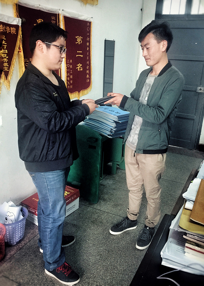 产品设计专业1602班的骆海西同学和其室友上完课在煤渣场的路上发现一黑色钱包,查看后发现钱包里面装有360多元现金、银行卡、身份证、门禁卡等贵重物品。骆海西同学和其室友考虑到失主丢了这么重要的东西一定很焦急,于是他就毫不犹豫的在第一时间将钱包交给了老师,通过学办老师联系钱包的失主,在老师的帮助下将捡到的钱包还给失主。当失主拿回钱包时非常感动,连忙向骆海西道谢。骆海西同学微笑的说:“不客气,这真的没什么,我相信如果其他人捡到了也会这么做的。”300多块钱对于一个学生来说不是一个小数目,在面临如此大的诱惑下,该同学并没有将捡来的东西据为己有,而是做了正确的文明之举。