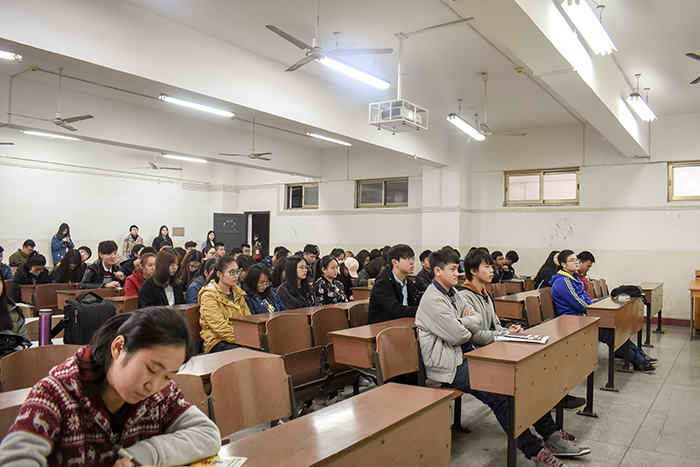 学办主任晏莉、辅导员王慧磊、娄申和团总支书记张澎主持的“寝室联络员培训会”在五教602教室召开。