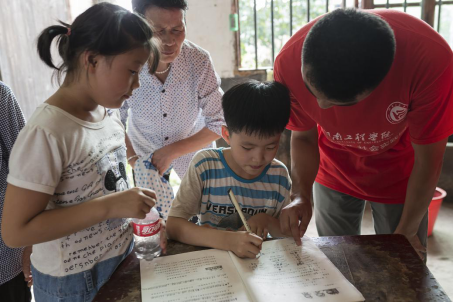 寓教于乐,用“新”支教留守儿童。父母常年在外打工,暑假到处游窜成了当地孩子们的“家常便饭”。本次下乡团队的支教组将孩子们汇集到一起,创新教授模式,手把手辅导留守儿童功课。此外,他们还结合自身优势,将绘画带到了课堂,同时以当地“荷花”为主题,利用墙绘给孩子们上了一堂生动的室外实践课程,既传播了知识,又保障了孩子们的安全。