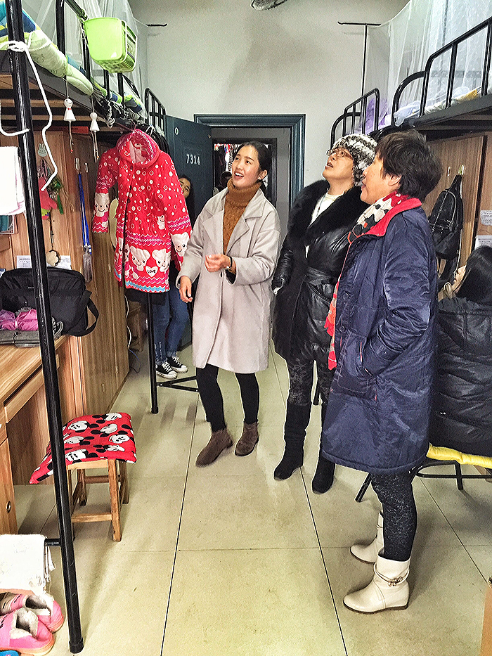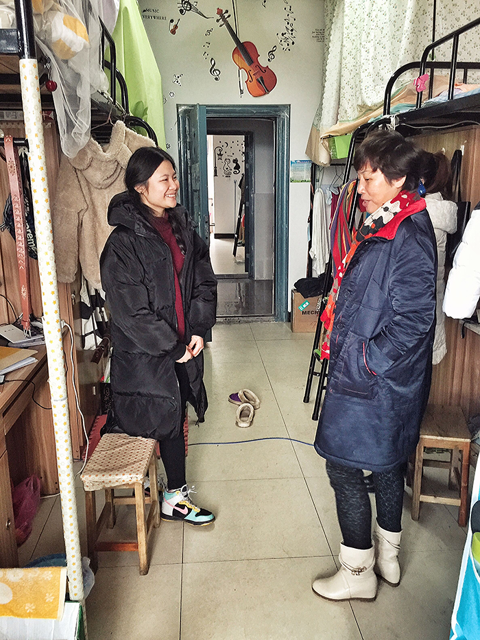 老师们查看学生生活环境,关心学生的日常生活并对出现的问题提出建议和要求。安全隐患要根除:强调严禁使用大功率、插座勿乱接。用完插座之后要收好,以保证用电安全。器物维修要反映:部分寝室有些许难闻气味,老师询问其原因,发现这些寝室窗户不能打开通风,并提醒学生们有需维修的地方要及时反映到位,以免造成不便。寝室卫生要保证:寝室不整洁,这是普遍存在的问题。被子折叠不整齐、衣服乱挂乱堆、桌子上物品凌乱、电风扇灰尘堆积等都需要改进。