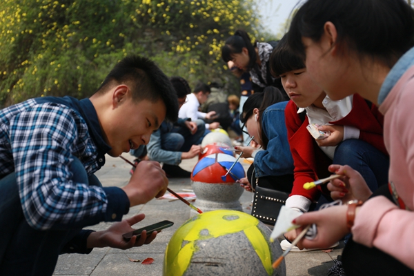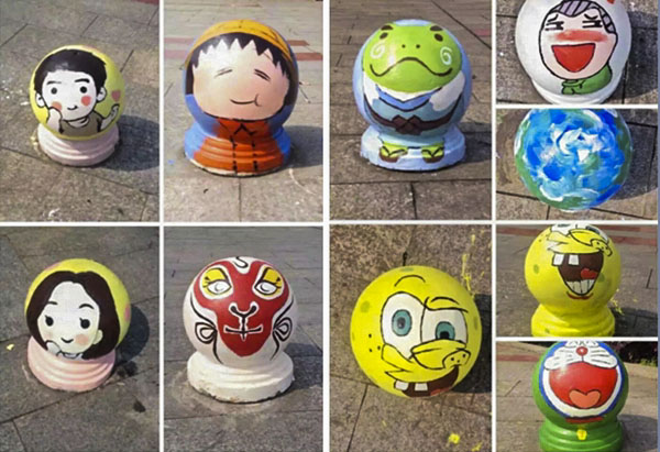 学生会于2016年3月19日组织学生在新校区的校园隔离石墩进行了创意涂鸦。