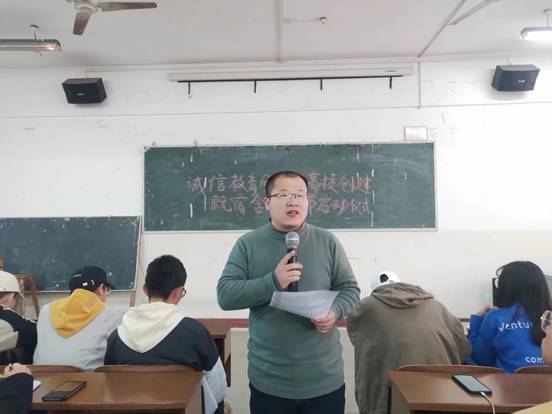会议开始,王慧磊就诚信教育活动相关事宜作出详细指示并深入浅出,旁征博引,为学生阐明了诚实守信、言行一致的重要性和必要性。紧接着,他带领在场所有人员宣读了有关责任书,并要求同学们要把诚信工作落实到实处,用心遵守诚实守信相关准则,详细叙述了校园安全相关方面所存在的问题并提出同学们要管理好宿舍生活习惯并注意宿舍用电的安全隐患。
