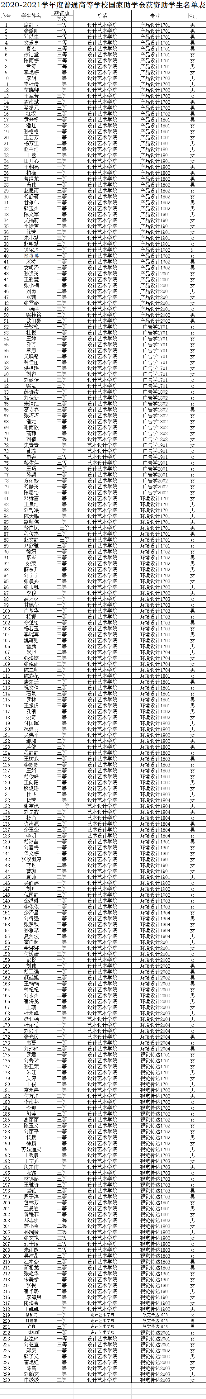 根据学校《樱花动漫 国家助学金奖学金评定及管理条例》等文件精神和要求,樱花动漫 认真组织、安排国家助学金的评审工作,制定助学金评审细则,并要求各班成立以班主任为组长的7人评审小组负责本班学生的助学金评审工作。樱花动漫 坚持公开、公平、公正的原则,实行等额评审,经学生工作办公室审核,党政联席会议审定,评选出助学金230人。具体名单附后。公示时间为2020年11月16日到11月20日,公示期五天,如有异议,请与学办联系。