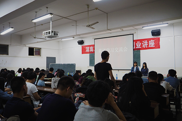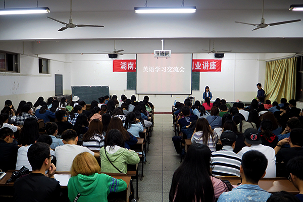 诚邀外国语学院于五教602进行英语学习交流会。此次讲座邀请到的是校飞翔英语俱乐部会长吕晶晶和外国语学院英语学霸之一范媛媛,15级、14级、13级近两百名同学积极参加了此次讲座。