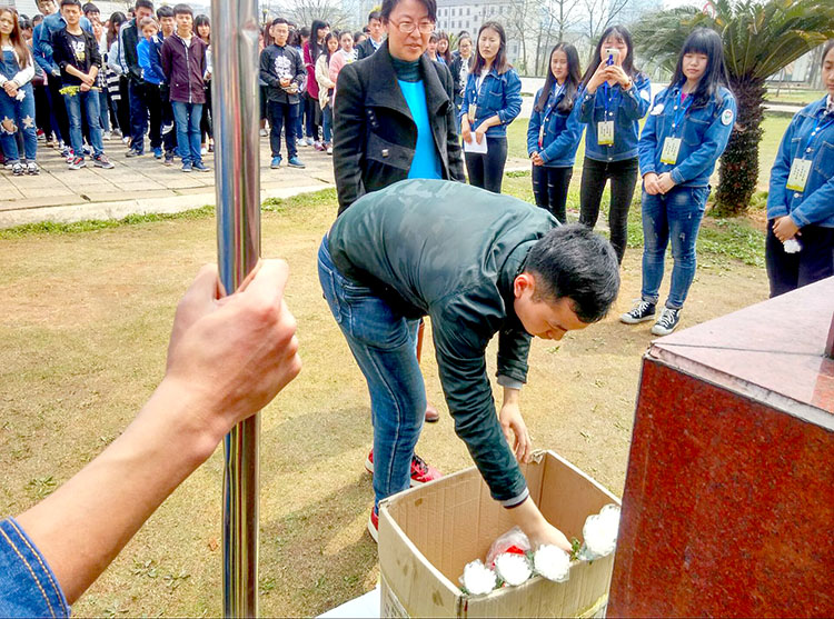 在党总支副书记张曙、学办主任晏莉、辅导员娄申、团总支书记张澎的带领下于学海花园进行集体缅怀宗玉宝烈士活动。