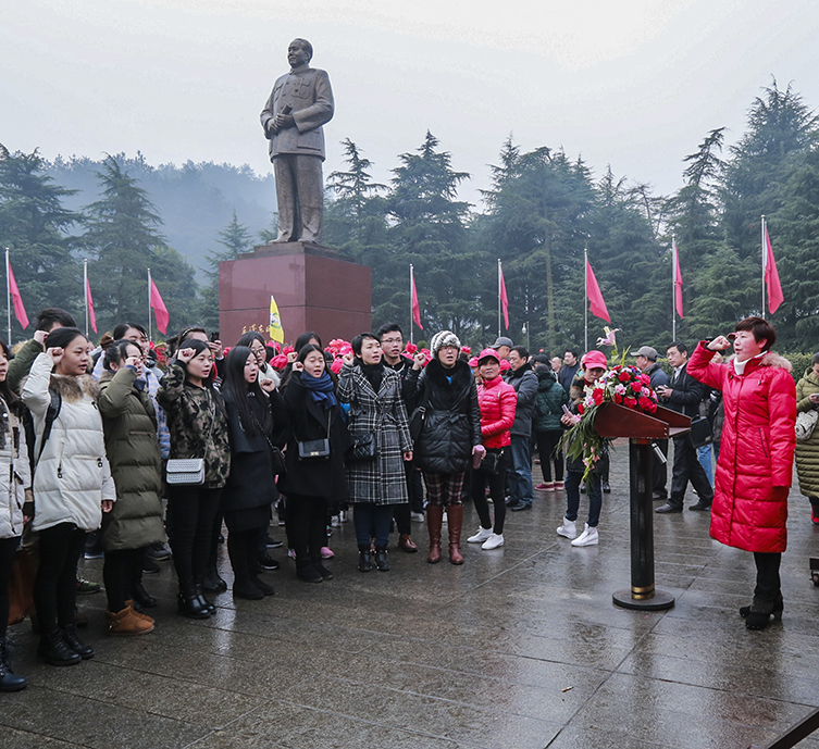 全体师生党员干部来到了毛泽东家乡韶山,纪念毛泽东生辰并且全体党员进行入党宣誓,此次活动圆满结束。