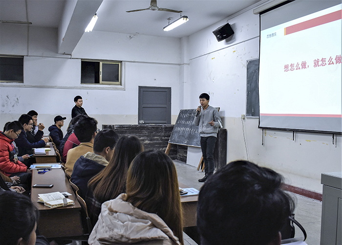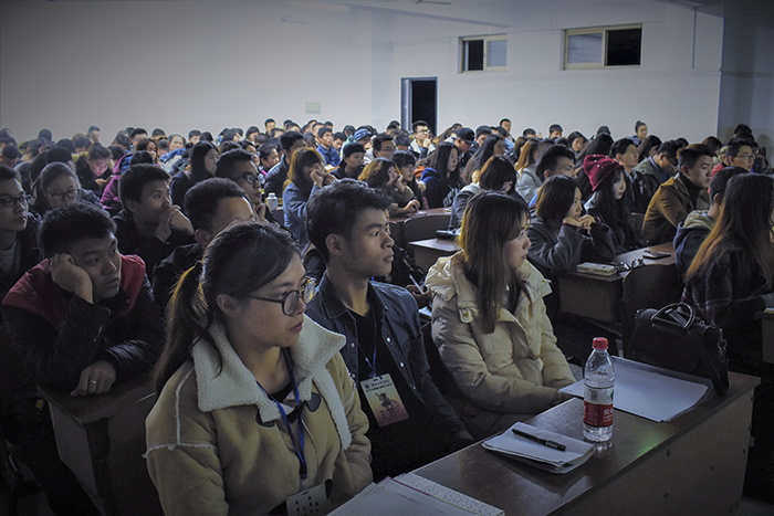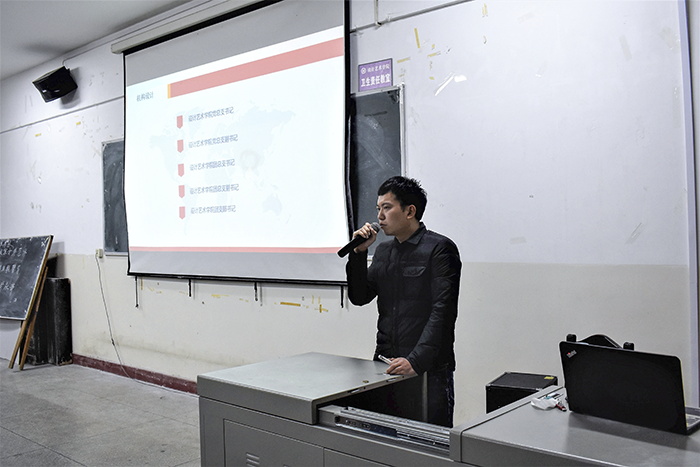 张澎老师首先向在座各位同学分享了自己的学习、工作经验,重点强调各成员在工作中应端正自己的态度,积极阳光的心态去面对困难。随后,张老师又从思想教育,创新创业,社会实践,校园文化等方面介绍了樱花动漫