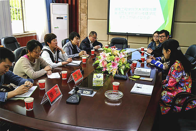 湖南师范大学新闻与传播学院对考察团成员表示热烈的欢迎。考察团成员通过座谈交流、实地走访对学生工作进行了调研与学习。首先,师大新传学院的辅导员对党建、宣传、团学活动相关工作进行了详细解读。随后,介绍了学生会换届选举相关管理办法,提倡“我参与、我体验、我收获、我快乐”。