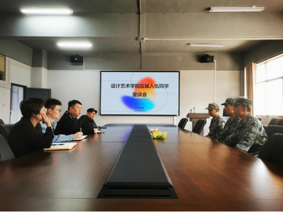 在学院会议室召开了2023年应征入伍同学座谈会。党委副书记缪智文,环境设计教研室主任刘方笑,学生工作办公室张超、周宁莎和陈佳老师出席,视觉传达设计1901班赵志刚、环境设计1904班王广涵、环境设计1904班杨金润参加会议。