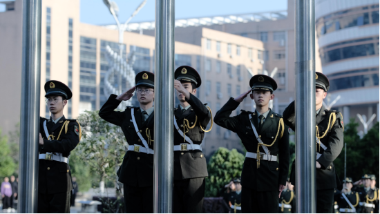 在主校区知行广场隆重举行了升旗仪式。学院领导、学办全体老师、学生党员、第十五届团总支学生会干部、21级和22级全体同学参加升旗仪式,本次仪式由学院党委副书记缪智文主持。