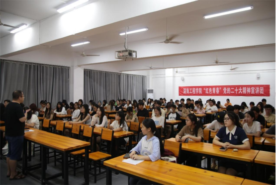 一场小而精的宣讲活动、一次由浅入深的思想交流,”红色青春“宣讲团成员用通俗的语言、生动的事例、扎实的数据,让广大青年学生对党的二十大精神有了更全面的理解和认识,更教育引导青年学生注重把党的二十大精神与个人发展、专业优势、家乡建设和社会发展结合起来。