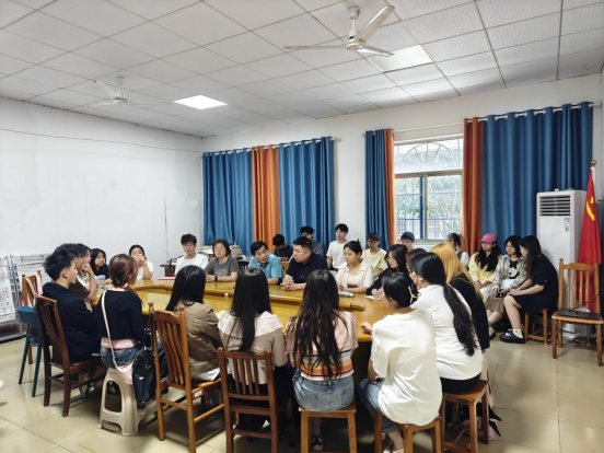 党委书记陶宏与其联系广告学同学们在学海8栋党员活动室召开师生座谈会,就大学生活中存在的问题展开了交流和讨论。