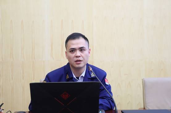 (消防救援队支队科长许琦在为同学们讲解消防安全知识)