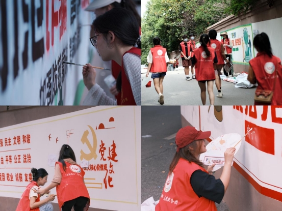 艺馨社、机械工程学院青年志愿者服务中心在湘潭市岳塘区曙光社区开展了为期两天的文化墙建设活动。