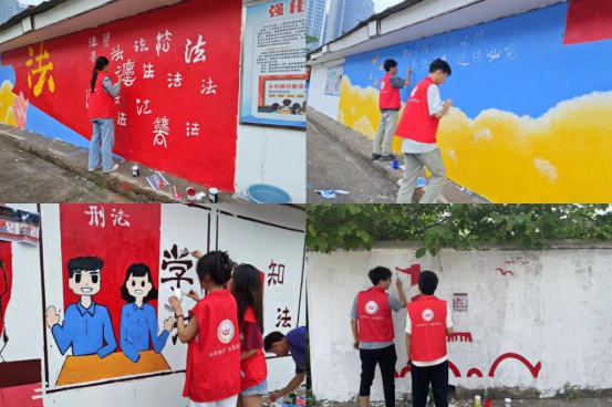 志愿者们满怀热情地投入到墙绘创作中。他们用笔刷和颜料等工具,巧手绘制出一幅幅充满创意的墙画,画作色彩鲜艳、形象可爱,既符合司法的庄重氛围,又不失活泼与亲民。