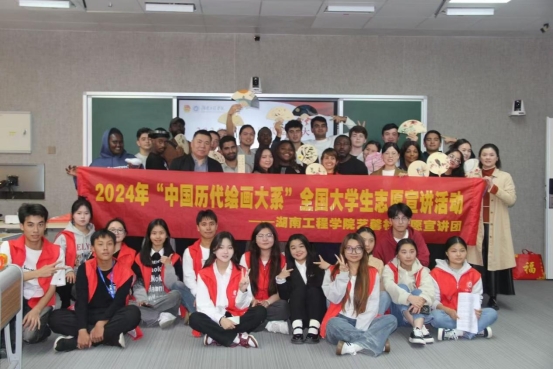 宣讲员从家国情怀,和谐理念,高洁品质和哲理内涵四个方面引领留学生感受中国水墨艺术之美,领略中华绘画艺术的魅力。从历史人物到绘画表达,从宋元文人画到明清水墨画,从精致花鸟画到意境山水画,同学们聚精会神地聆听,沉浸在国画所蕴含的诗意、哲学与审美情趣之中。一幅幅画面,或雄浑、或婉约、或空灵,亦是云蒸霞蔚,亦是山川巍峨,让留学生对中国传统文化的博大精深有了更深刻的感悟。