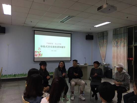 组织开展,面向全校共招募15名在校生,涉及机械、材化、纺织、设计等学院学生,引导师黄镜燕通过音乐分组体验、分组音乐讨论、正念训练、音乐放松与想象四次主题活动,以音乐为媒介和催化剂,引导团队成员关注内心,关注情绪,有效地帮助成员自我暴露、积极表达与放松身心,形成良好的情绪体验。来自材料16级的缪同学说:“一直以来,我是一个比较理性的人,但音乐分组体验让我震撼于其感性的力量,我觉得自己的情绪在音乐的催化下有了很美好的体验”;来自17级的熊同学说:“最近学习、工作压力比较大,每周日的团体辅导活动成了我放松自己、找寻快乐的一个方式,很感谢也很庆幸有这样一个活动。”;来自机械18级的王同学在团体辅导结束后说:“每一个来的时候心情都是沉沉的,但离开的时候都感觉特别轻松,感觉课程很有效果,以后有这样的课程我还想来”。