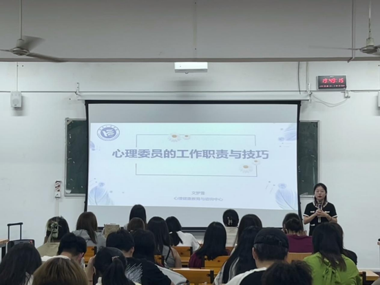 专题培训活动,活动由院团总支书记魏丹主持,院党委副书记缪智文参加,23级至21级各班心理委员与寝室长参与。