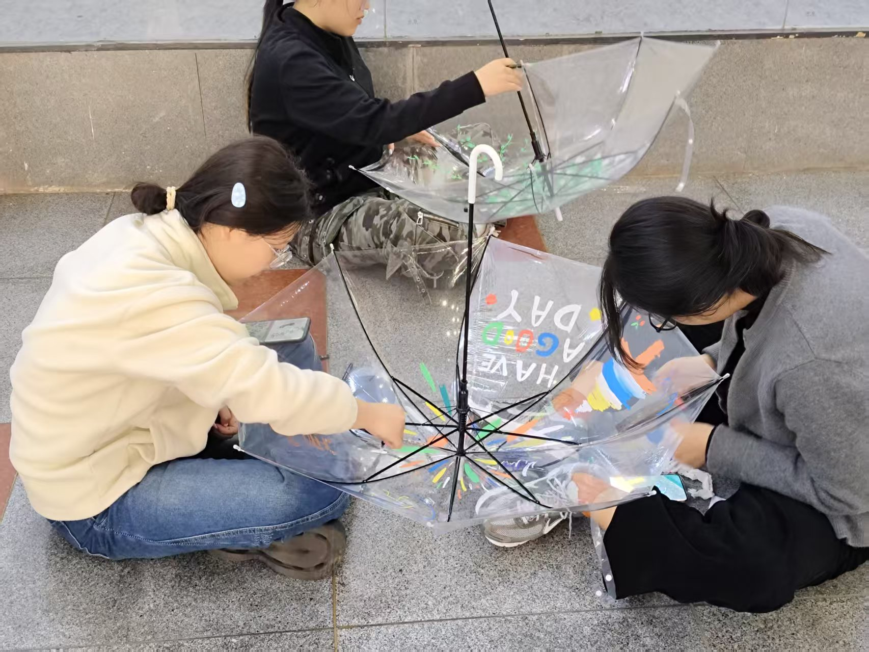 “伞下藏温暖,雨天亦安然” 手绘心理活动在五教二楼温馨举行。本次活动由学院心理健康服务部主办,以透明伞为画布、以色彩为媒介,让同学们在艺术创作中释放情绪、治愈心灵。